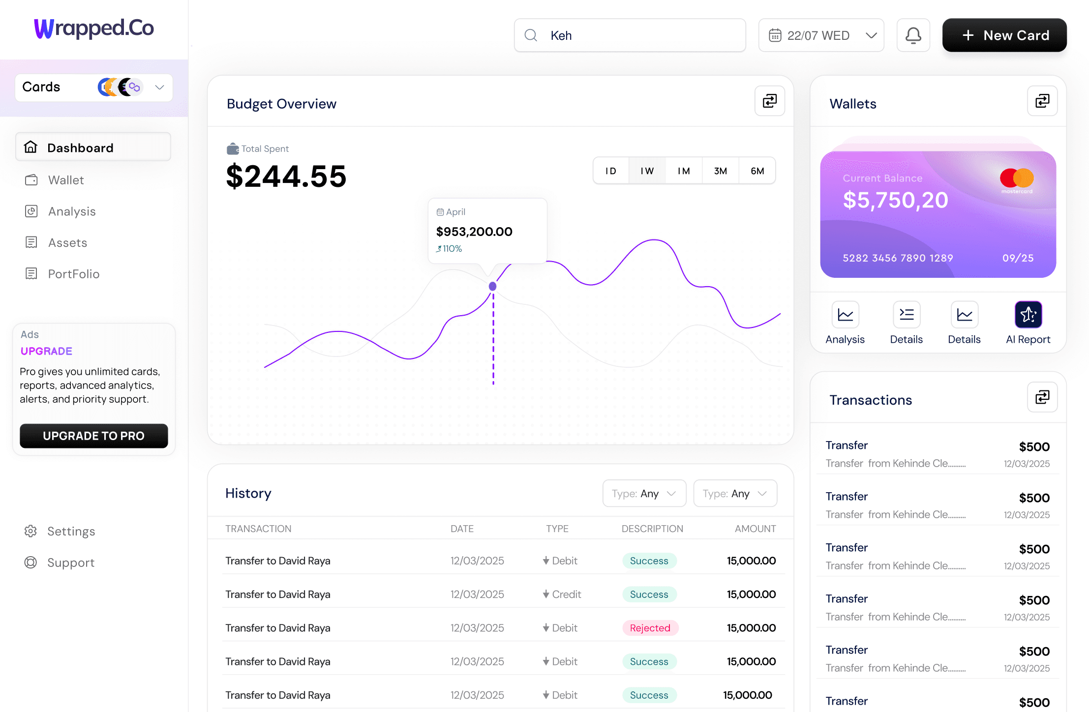 Wrapped securely syncs all your cards into one sleek dashboard, giving you a real-time overview.